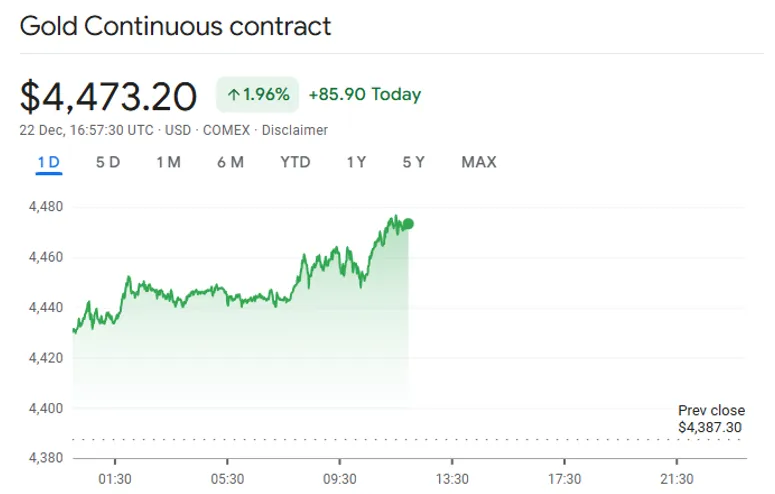 Precious metals reached unprecedented levels as safe-haven demand strengthened. Gold futures climbed to a new record high of $4,453 per ounce early Monday. Gold prices surged nearly 70% throughout 2025, driven by Federal Reserve rate reductions, significant central bank purchases, and momentum-driven investor enthusiasm.​