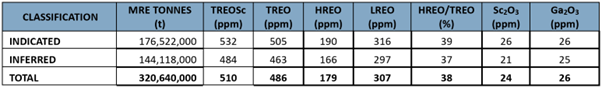 Figure 3: August 2025 North Stanmore Mineral Resource Estimate (using a ≥330ppm TREO + Sc₂O₃ cut-off grade)