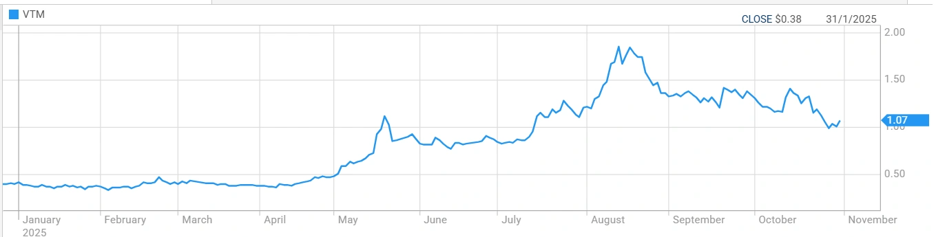 Victory Metals’ shares last traded at $A1.070, marking a 5.940% gain on the same day and reporting an impressive year-to-date increase of 161.73%. With a market capitalisation of approximately $A132.1 million, Victory has shown remarkable growth momentum throughout 2025. The stock has traded within a 52-week range of $A0.31 to $A1.915,