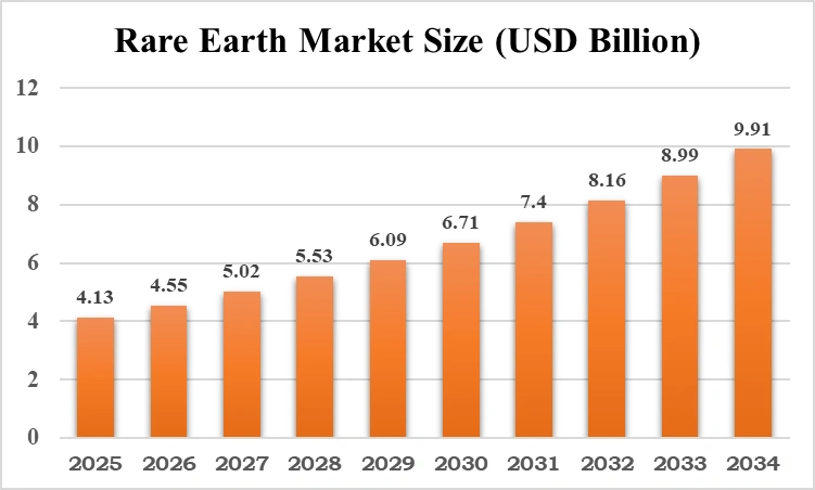 According to Precedence Research, the global rare earth metals market was valued at USD 3.75 billion in 2024 and is projected to reach USD 9.91 billion by 2034, growing at a CAGR of 10.21%. The adoption of electric vehicles (EVs), clean energy technologies, and high-performance electronics is driving demand for critical minerals such as Dysprosium, Terbium, and Yttrium, key components in permanent magnets.
