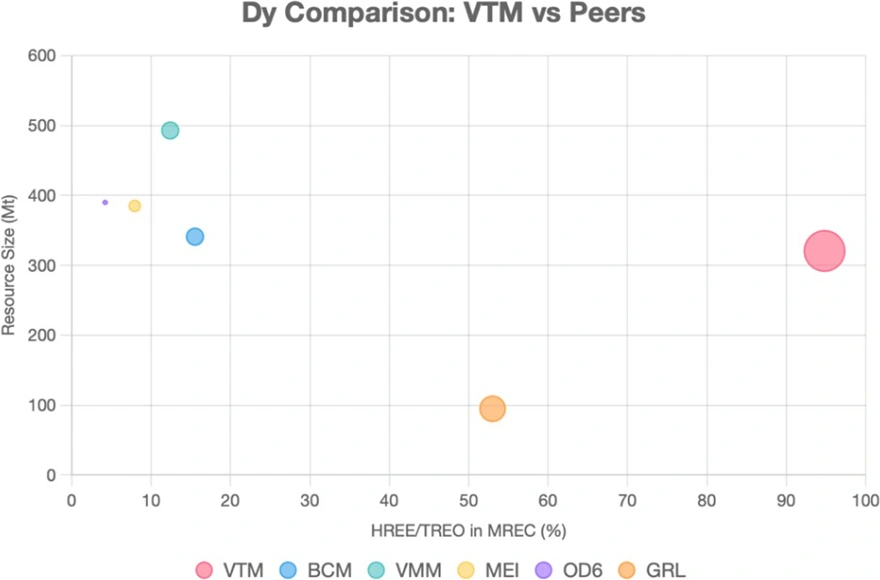 Figure 4: Victory’s dysprosium/terbium grades comparison with global peers