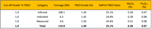 Vital Metals are now focusing on maturing the Tardiff Deposit toward development. With a Measured & Indicated Mineral Resource of 119.0 million tonnes at 1.4% Total Rare Earth Oxides (TREO), Tardiff is among the higher grade rare earth deposits with a highly attractive NdPr:TREO ratio (~25%) compared to peers.