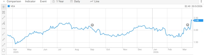 Figure 3: Viva Energy Group Limited (ASX: VEA) share price chart illustrating recent upward momentum over the past year [Courtesy: ASX]