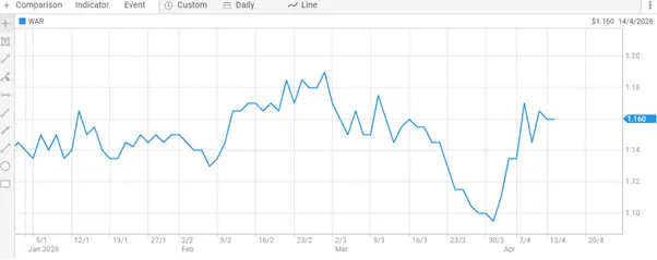 WAR shares have since recovered modestly. The stock most recently traded at $1.160, with a bid/offer range of $1.150 to $1.160. Trading volume reached 47,753 shares, and the company’s market capitalisation stands at $208.94 million.