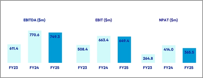 The Lottery Corporation delivered resilient FY25 results despite challenging economic conditions. Net profit after tax reached AUD 365.5 million. The Company declared total ordinary dividends of 16.5 cents per share, representing 100% of net profit after tax.