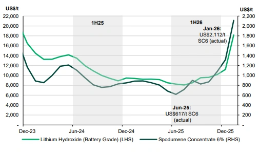 Figure 4: Lithium prices rebounded in 1H26, supporting WesCEF earnings. [Source: Wesfarmers]