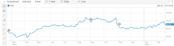 The Covalent Lithium joint venture’s LiOH refinery is producing high-quality product, though the production ramp-up has been affected by intermittent odour issues. Engineering works are expected to be completed by mid-2026. WesCEF’s 2H26 earnings are expected to be slightly ahead of 1H26, based on contracted spodumene volumes.