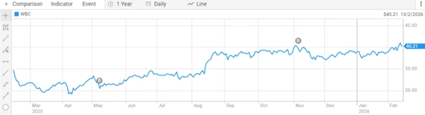Figure 5: Westpac Banking Corporation (ASX: WBC) share price performance over one year. [Source: ASX]