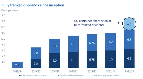 When including the value of franking credits at a 30 per cent tax rate, the grossed-up dividend yield reaches 7.6 per cent. This positions the Company as an attractive option for Australian investors seeking tax-effective income.