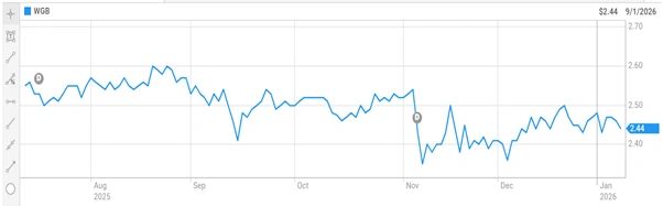 Over the 52-week period, WGB shares traded within a range of $2.070 to $2.640 per share. The current price sits in the middle of this range.