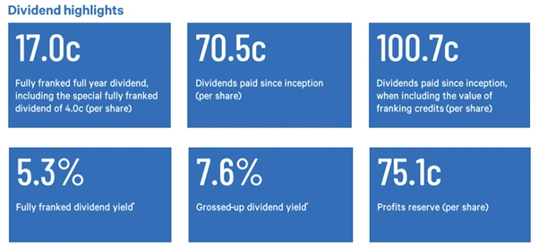 Figure 2: WAM Global Limited dividend highlights. [Source: WAM Global Investment Update]