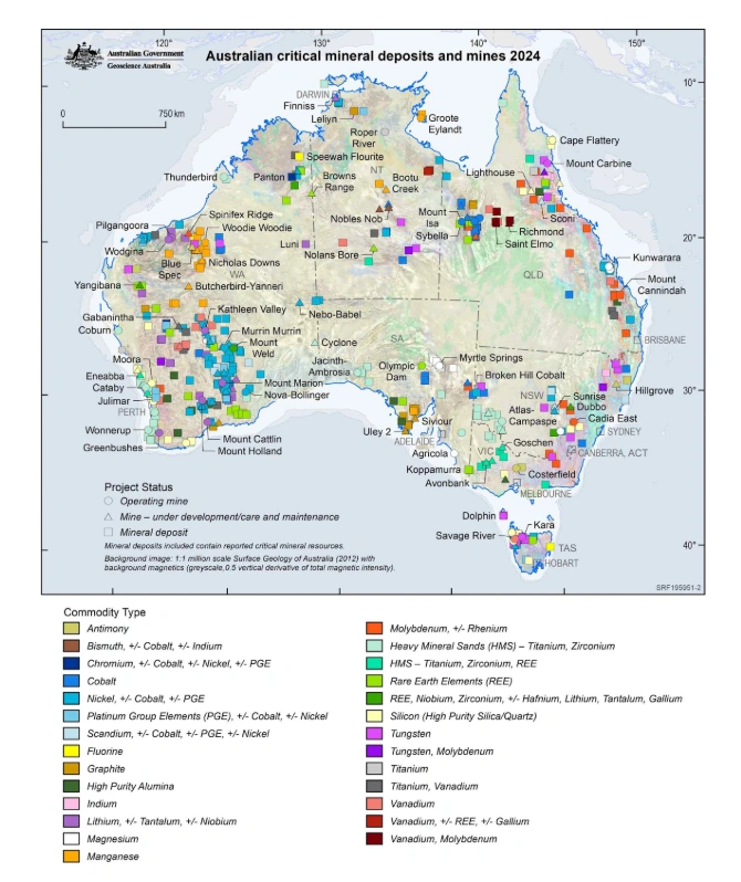 Australian critical mineral deposits and mines in 2024 [Geoscience Australia]