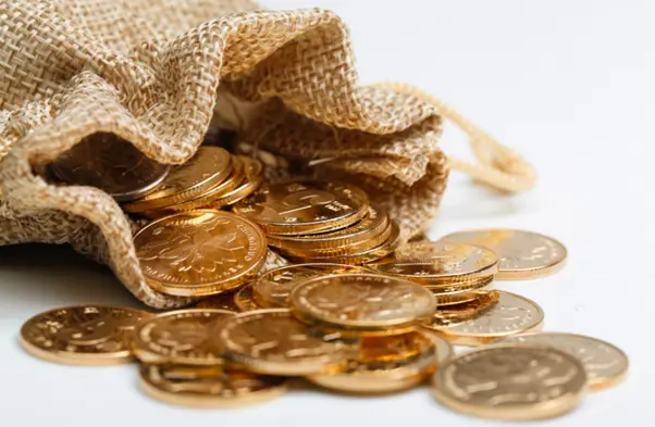 Figure 2: Gold coins spilling from a cloth bag, reflecting safe-haven demand during market uncertainty. [Source: Freepik]