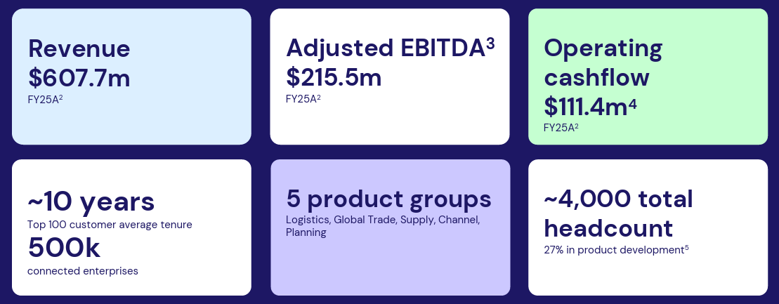 E2open, founded in 2000 and headquartered in Addison, Texas, is a prominent player in SaaS-based logistics and supply chain solutions. With a global network spanning over 500,000 connected enterprises and processing more than 18 billion transactions annually, E2open provides technology that enables the manufacturing, movement, and selling of goods worldwide. This complementary offering significantly extends WiseTech’s reach and capability.