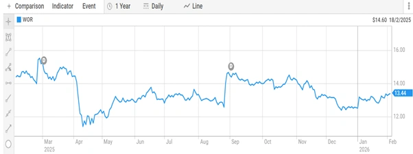 Figure 5: One-year share price performance of Worley Limited (ASX: WOR) [ASX]