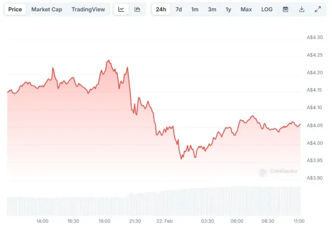 - XRP is currently trading at A$4.06, marking a 1% increase from an hour ago but a 2.2% drop since yesterday.
