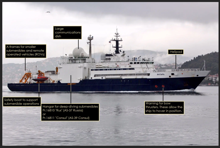 The Yantar operates as a mothership for advanced UUVs. These underwater drones can conduct detailed seabed surveys and interact with submerged infrastructure. The vessel’s tracking is aided by automatic identification systems, though it sometimes uses tracking manipulation to reduce detectability. Its technology and operational methods enable extensive intelligence gathering beyond simple maritime reconnaissance, making the ship a strategic asset in underwater espionage.