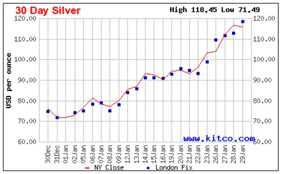 Figure 4: 30 days Silver Price Chart [Kitco]